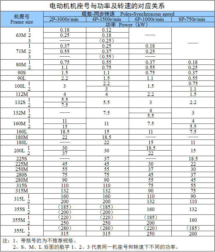 本系列電動機的功率等級、安裝尺寸符合國際電工委員會(IEC)標準,其對應關系與德國DIN42673標準相同,有利于出口設備的配套和引進設備的備品備件。